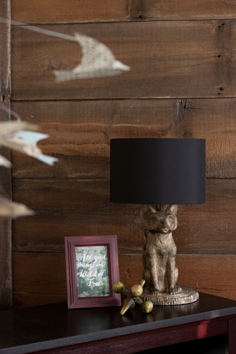 I love the room. I must admit my two favorites are the wood wall and the curtains…oh & the antlers! 🙂