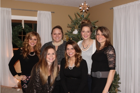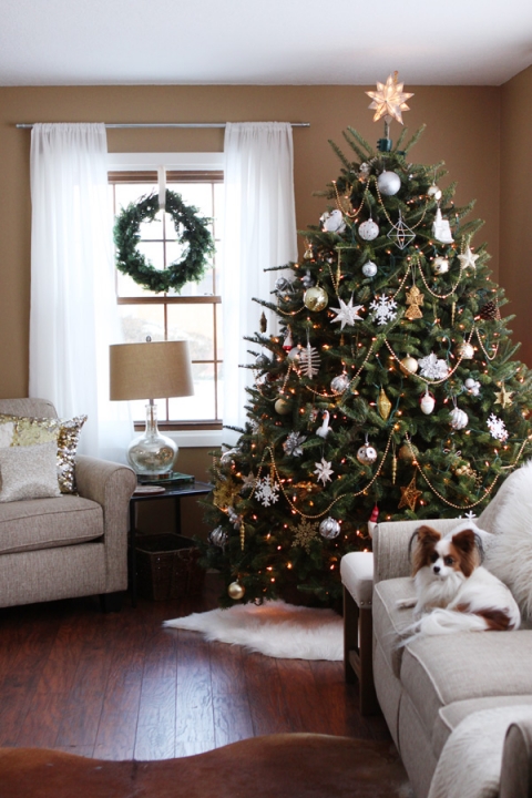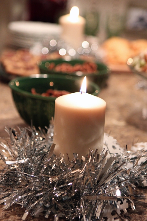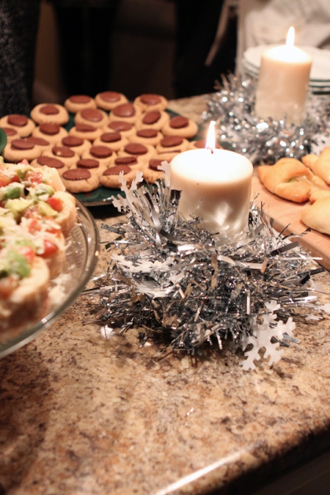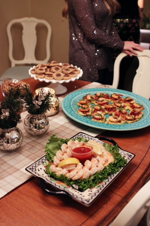 Okay so obviously this wasn’t my first Christmas party but it IS the first one I hosted in this house. So I had a little extra motivation when it came to decorating. I was on a budget so thankfully I found a bunch of Christmas sales and made do with things I already had. D is a firm believer in real Christmas trees so we had a little family outing earlier this month. The theme for the party was “sparkly” so I was excited to find some sparkly pillows to match :). The dress code was wear something sparkly too and luckily I had bought this last month. Various appetizers and desserts were on the menu including avocado brushetta and apple brie croissants. We also did a “my favorite things” gift exchange and all ended up with some really fun things. Have I mentioned I LOVE Christmas?!?