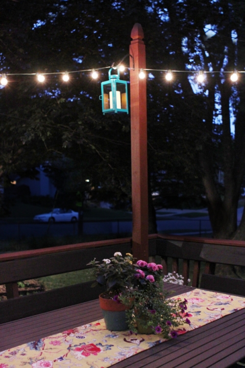 I love the way it turned out. I am obsessed with that teal lantern! I dream of having an outdoor space with string lighting someday…